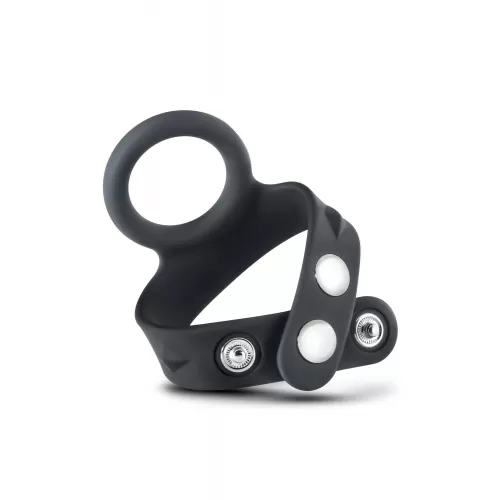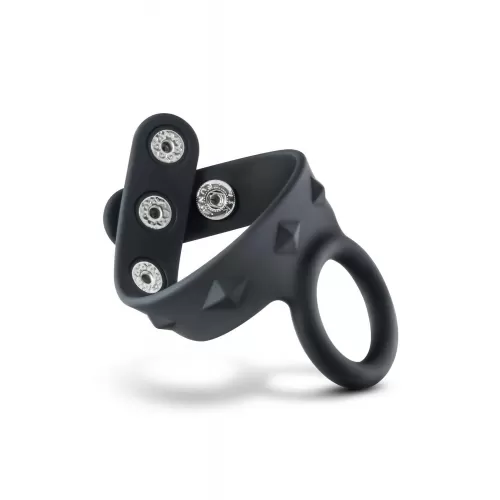 Черное эрекционное кольцо с подхватом мошонки на кнопках VS6... Читать далее...