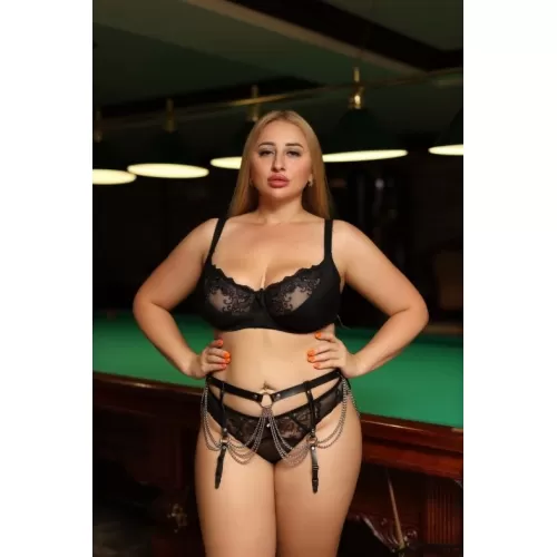 Утонченный и сексуальный кожаный пояс для чулок, выполнен в черном цвете. Размер аксессуара XL. Пояс декорирован качественными металлическими кольцами и цепочками, которые эффектно подчеркивают фигуру и создают эротичный... Читать далее...