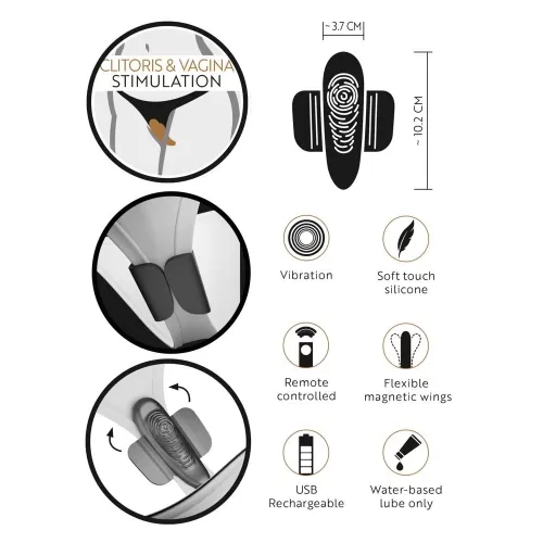 Вибратор в виде трусиков идеальной формы со стимулирующей текстурой от GoGasm с магнитными крылышками для крепления к трусикам. Обеспечивает целенаправленную и интенсивную стимуляцию клитора и губ вульвы. 10 режимов вибр... Читать далее...