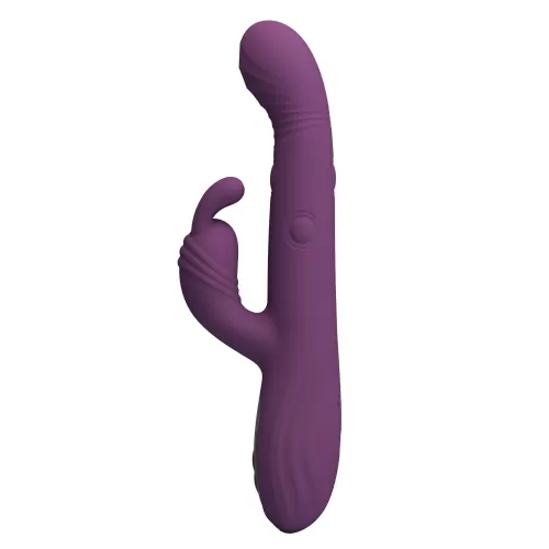 Фиолетовый вибромассажёр-кролик Dee. 9 режимов вибрации, 4 режима кивания, 4 режима постукивания. Рабочая длина - 14 см... Читать далее...