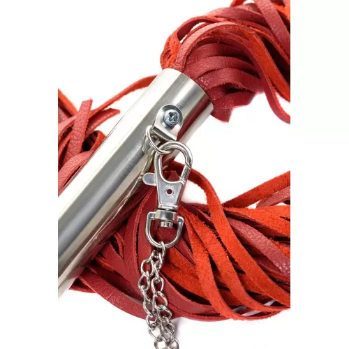 Стильная плеть из красной кожи с металлической рукояткой. Рукоятка с петлей - цепочкой. Предназначена для средних и сильных воздействий по разогретому телу партнера. Длина рукояти - 18 см... Читать далее...