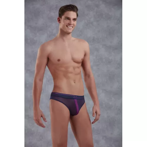 Сексуальные мужские трусы-слипы из прозрачной тёмно-синей сеточки, спереди украшены контрастной сиреневой полоской. Мягкий и эластичный, очень лёгкий материал. На поясе стильная пришивная резинка со стилизованными латинс... Читать далее...