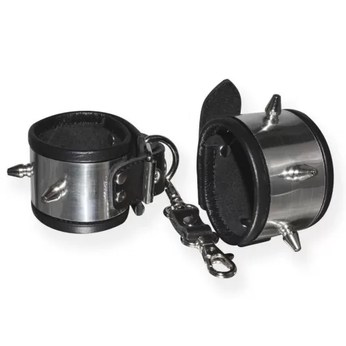 Серебристо-черные наручники с шипами и металлическим блеском... Читать далее...
