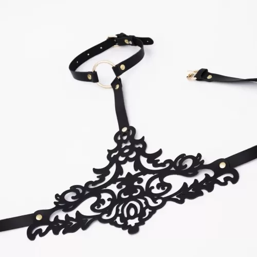 Эта резная портупея изготовлена из черной натуральной кожи и дополнена золотистой фурнитурой высокого качества. Ремешки соединены между собой кольцами и клепками. Благодаря большому диапазону регулировок портупея великол... Читать далее...