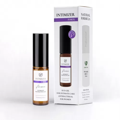 Новое поколение средств для интимной гигиены от бренда INTIMIZER. Богатый натуральный состав - не имеет аналогов по количеству и концентрации активных компонентов! Комплексно выполняет все необходимые функции по поддержанию интимного здоровья и комфорта. Восстанавливает микрофлору. Оказывает длительное освежающее и ухаживающее действия, а также имеет дополнительные терапевтические свойства. Одобрен гинекологами. Эко-гель INTIMIZER на 100% заменяет привычный интимный уход. INTIMIZER FORTE – это усиленная высококонцентрированная формула широкого спектра действия, профессиональная линия средств бренда INTIMIZER. Более быстрая и надежная защита против широкого спектра патогенных микроорганизмов за счет увеличенной (на 50%) концентрации Smart частиц серебра, 30ppm. Ускоренное (на 35%) восстановление здорового микробиома интимной зоны и улучшенная профилактика возникновения дисбактериоза за счет комплекса пребиотиков и постбиотиков. В 2 раза более интенсивный увлажняющий эффект за счет еще одного нового элемента формулы – водосберегающей молекулы Aquaxyl. Еще больше привлекательности с двойной концентрацией феромона Iso E Super. Идеален для ежедневного применения и в качестве SOS-средства. Наносится и не требует смывания. Обеспечивает длительный комфорт и защиту. Предотвращает воспалительные процессы и инфекции, развитие дисбактериоза и вагинита. Помощь от молочницы. Заживляет микротрещинки, способствует ускоренному восстановлению после родов и операций. Спасает от сухости - увлажняет, питает, поддерживает эластичность и упругость. Деликатно отбеливает и омолаживает, сохраняя интимную эстетику. Гель на водной основе улучшает комфорт романтических отношений. Активные компоненты: Smart частицы серебра Молочная кислота Комплекс пребиотиков и постбиотиков (PREBIULIN, INULIN, WORESANA), Д-пантелол Fucogel, Критмум морской, Hydrovance, Биосахаридная смола, Гидролат календулы Гидролат Ромашки. Не содержит синтетических отдушек. Имеет чувственный аромат пачули
