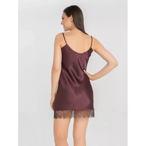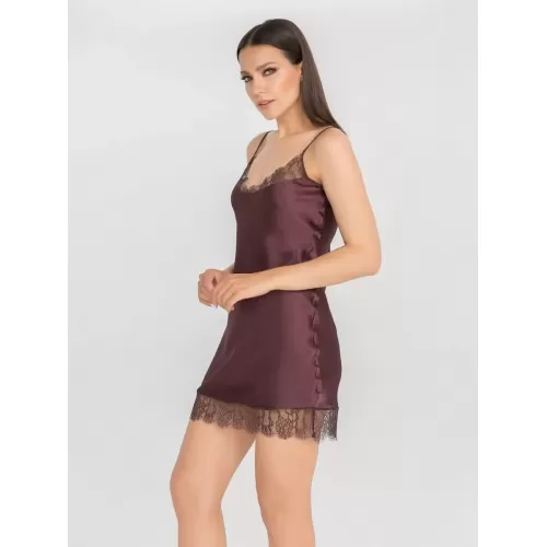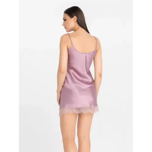Короткая сорочка на узких бретелях из искусственного шелка, декорирована кружевом по подолу и линии декольте... Читать далее...