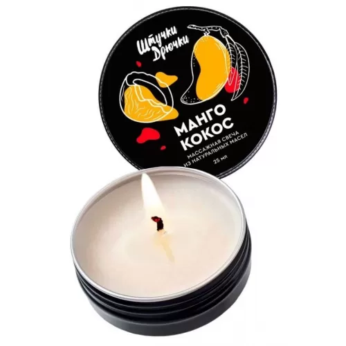 Романтический вечер при свечах непременно закончится массажем, если одна из свечей массажная. Массаж – подходящий способ проявить заботу и внимание, а массажная свеча с ароматом Манго и кокос способна оживить романтические отношения и растопить сложный день. Сочетание теплого масла и чувственных прикосновений расслабляет и погружает в негу блаженства. Экзотический аромат обволакивает и дарит еще более уютные и комфортные ощущения, раскрываясь нотами манго, кокоса и ананаса. Натуральные масла какао и миндаля увлажняют и насыщают кожу питательными веществами. Упругая, нежная и потрясающе бархатистая кожа – к ней хочется прикасаться всем телом. Посвятите время ритуалу любви с массажной свечой Манго и кокос. Способ применения: зажгите фитиль свечи на 15-20 минут. За это время растопится необходимое для массажа масло и помещение наполнится ароматом свечи. Потушите фитиль и дайте некоторое время маслу остыть, затем вылейте масло на кожу и приступайте к массажу. Верхние ноты – апельсин, ананас. Сердце аромата – персик, манго. Базовые ноты – сахар, кокосовое молоко