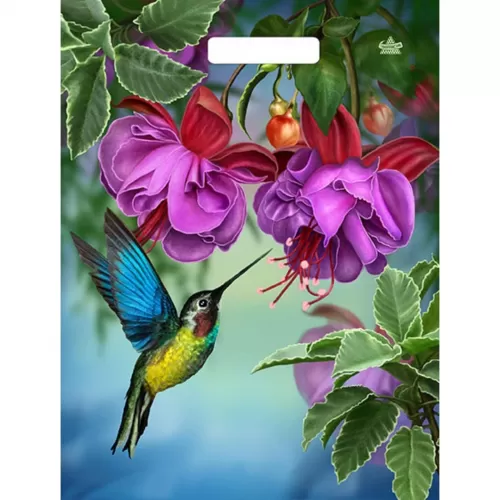 Пакет с принтом в виде колибри в цветах с вырубной ручкой (31х40 см... Читать далее...