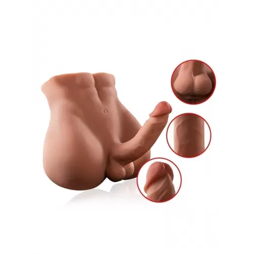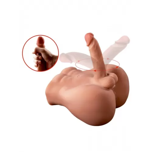 Великолепная секс-игрушка для всевозможных эротических удовольствий. Внесёт яркость и разнообразие в интимную жизнь. Гаджет изготовлен из приятного на ощупь материала.   В арсенале игрушки: - роскошный половой член с мягкой головкой и мошонкой, - режимы возвратно-поступательных движений с вибрацией в пенисе, - анальное отверстие с рельефной внутренней поверхностью, - аппетитные упругие ягодицы, - «накаченный» торс с гладко «выбритым» пахом, - мягкая нежная поверхность, дарящая приятные тактильные ощущения.   Секс-игрушка выглядит максимально реалистично. Половой член может наклоняться в разные стороны, позволяя использовать изделие в разных позах. Внутри пениса находится жёсткий стержень. Сам интимный аксессуар не имеет внутреннего каркаса, прекрасно мнётся и сжимается. Яркая коробка наглядно демонстрирует все возможности девайса.   Включение/выключение возвратно-поступательных движений и вибрации в пенисе: нажать и несколько секунд удерживать кнопку вкл./выкл. на корпусе изделия. Должен загореться/погаснуть световой индикатор. Переключение режимов: краткое нажатие той же кнопки. Возвратно-поступательные движения и вибрация включаются и работают только одновременно.  Размеры - 24х26х15 см. Рабочая длина - 15 см, диаметр - 4 см